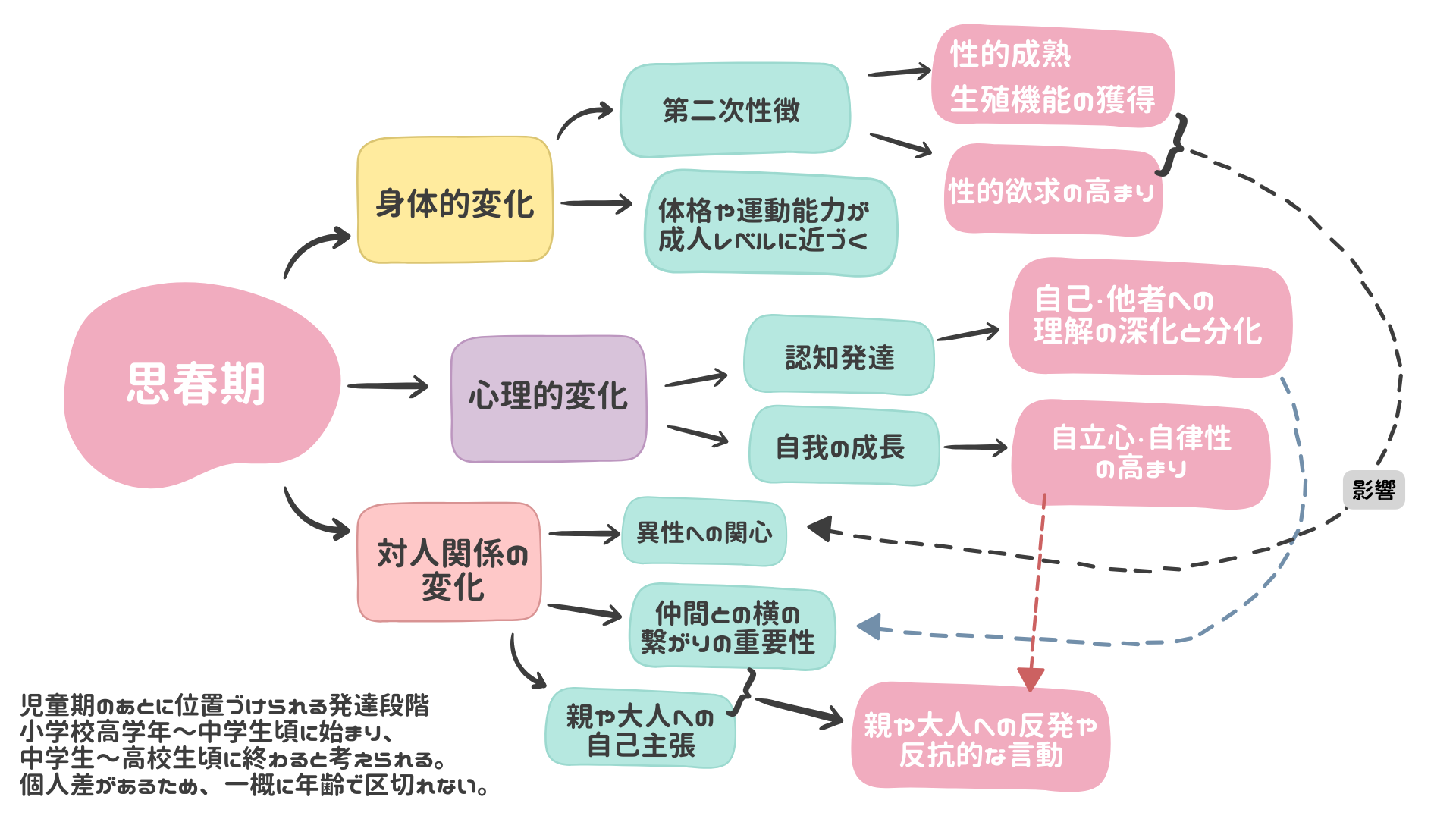 これらのことを踏まえ、思春期についてまとめると、以下のような図になります。