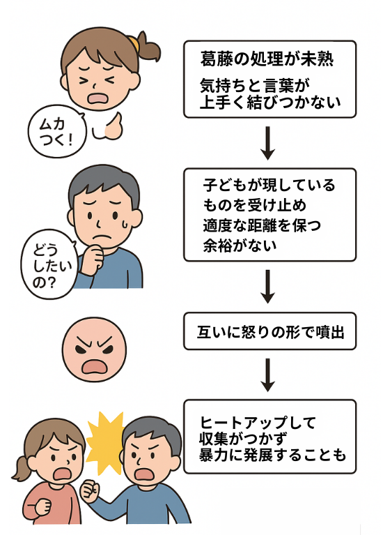 そうした変化を経験する中で、互いに激しい感情が表出し、衝突することもしばしばです。