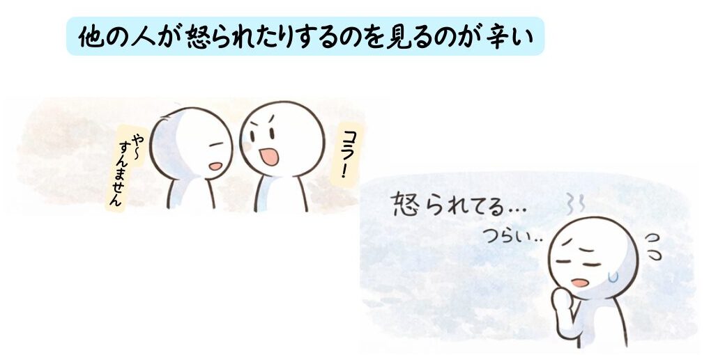 - 他の人が怒られたり注意されているのを見て自分事のように辛くなる