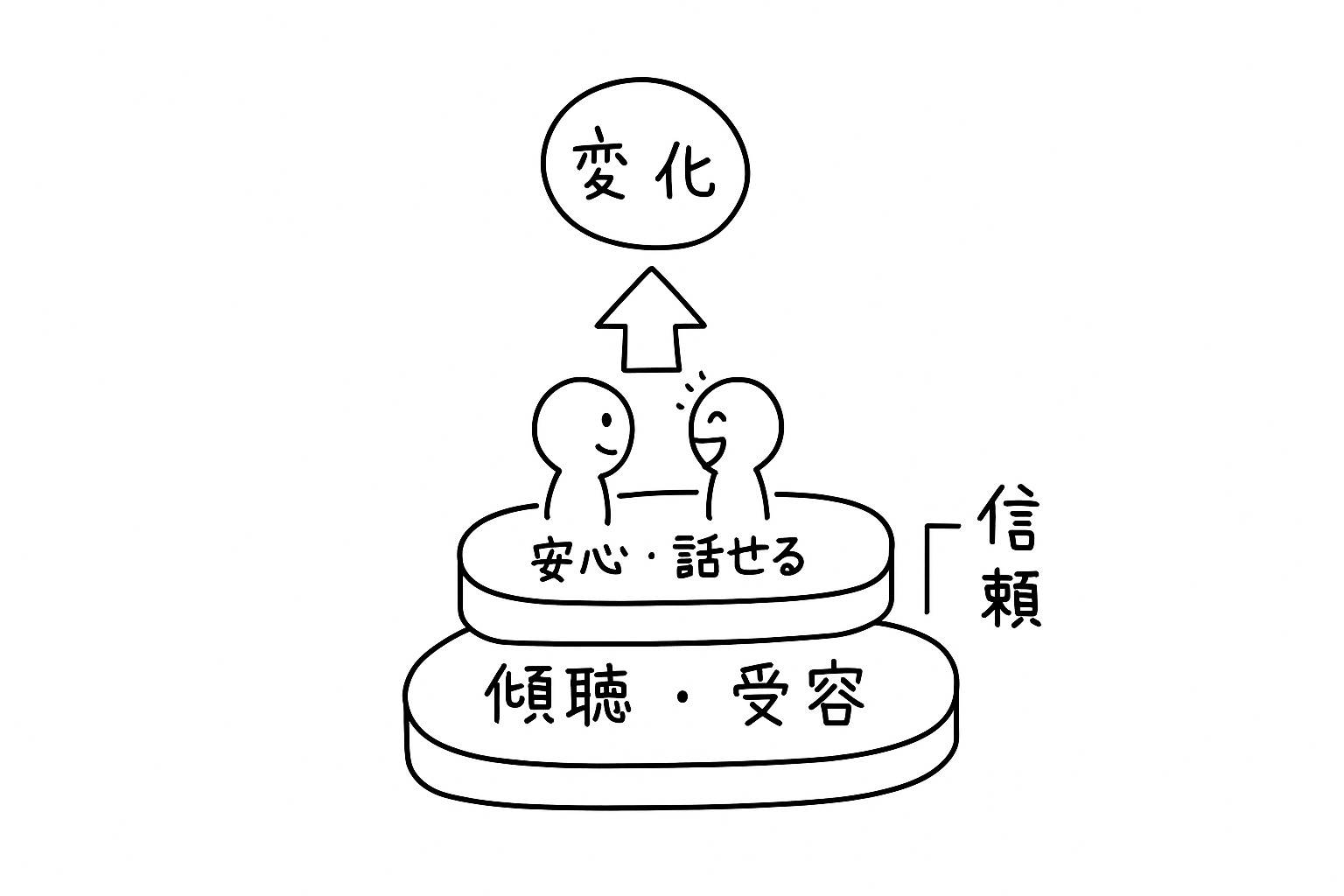 上記のような抵抗感を和らげ、安心して個人のことを話せるようにするため、信頼関係が大事になります。