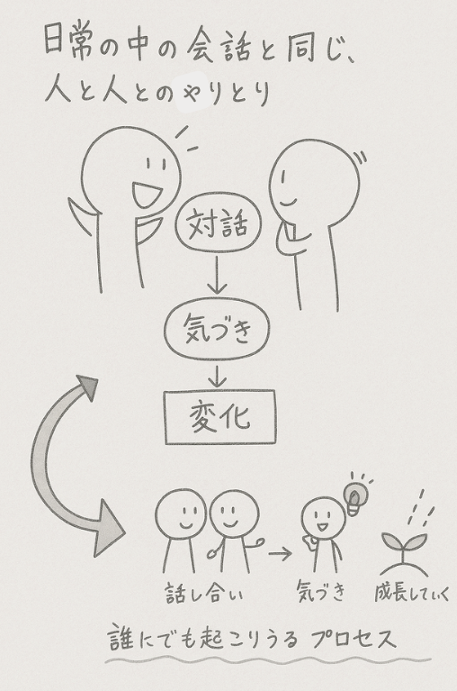 ここまで何度も書いてきましたが、他者との相互作用を通して自己理解、変容していく過程であり、それは私達の日常からかけ離れたものではありません。