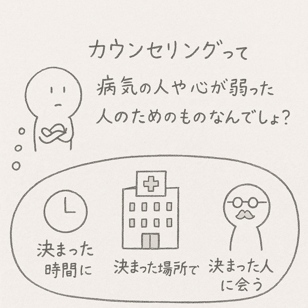 カウンセリングは、心の不調をきたした人や、心が弱っている人、病気の人が必要とするものだというイメージを持たれている方が多いようです。